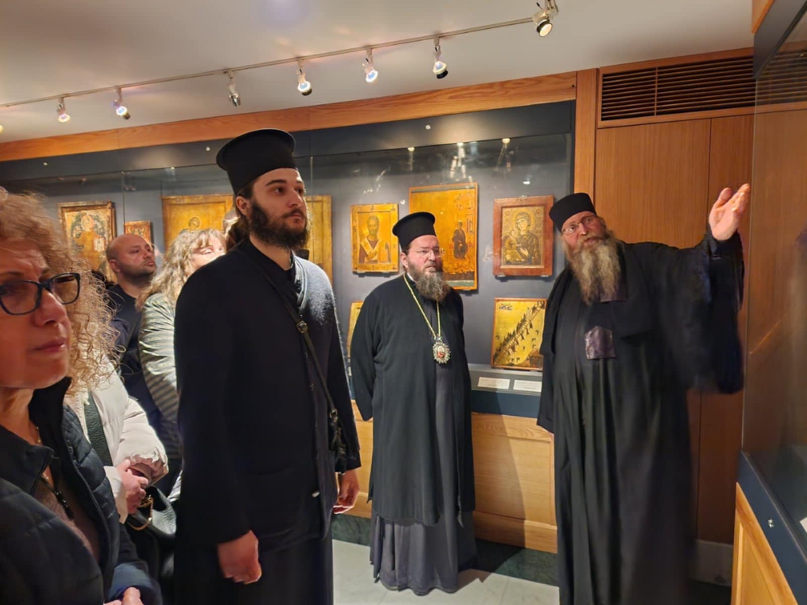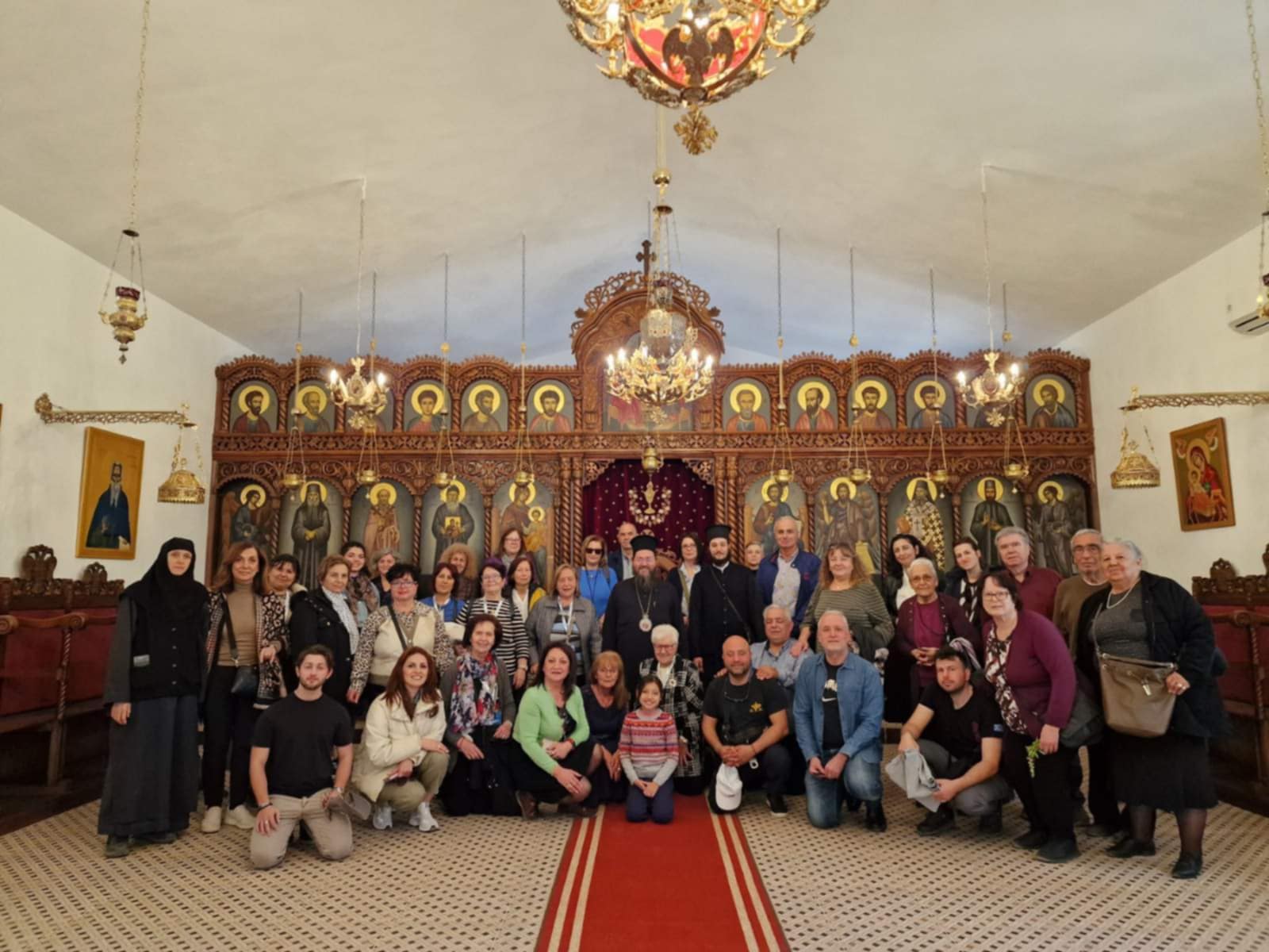 Ο Σεβασμιώτατος ιερούργησε στο Καθολικό της ιστορικής Μονής της Αγίας Αικατερίνης όπου όλοι προσκύνησαν τα Ιερά και χαριτόβρυτα Λείψανα της Αγίας και παρέλαβαν το συμβολικό δακτυλίδι. Αμέσως μετά είχε την ευκαιρία να ξεναγηθεί με τους προσκυνητές στην περίφημη Βιβλιοθήκη της Ιεράς Μονής, η οποία διατηρεί την δεύτερη μεγαλύτερη συλλογή χειρογράφων και Κωδίκων της πρωτοχριστιανικής περιόδου, μετά από αυτή του Βατικανού καθώς και στο Μουσείο της Μονής όπου φυλάσσονται βυζαντινές Εικόνες και τα Ιερά Κειμήλια.