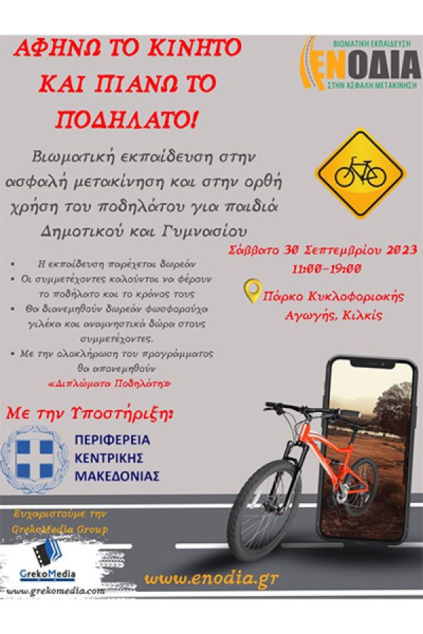 α) στο Πάρκο Κυκλοφοριακής Αγωγής του Κιλκίς, το Σάββατο 30 Σεπτεμβρίου, από τις 11:00 - 19:00 και
