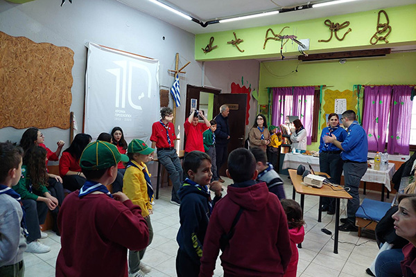 Ο Περιφερειακός Έφορος Προσκόπων Κεντρικής Μακεδονίας Χρήστος Καναρόπουλος με τον έφορο Οικονομικών Χρήστο Τομπουλίδη πρόσφεραν ως δώρο στον τυχερό βαθμοφόρο, την απαλλαγή από την οποιαδήποτε οικονομική επιβάρυνση στην επόμενη εκπαίδευση συμπεριλαμβανομένων των οδοιπορικών του.