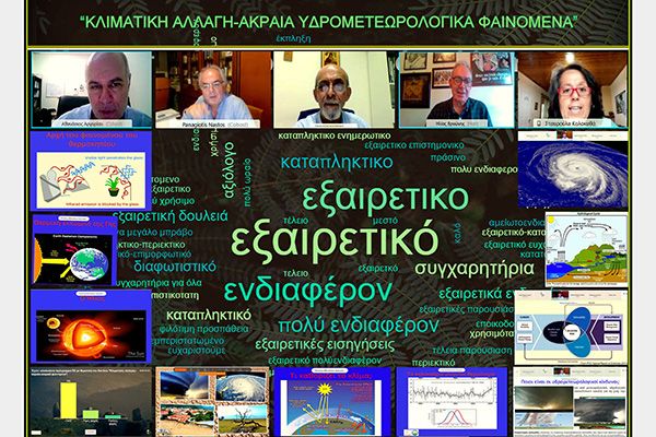 Η επιμορφωτική συνάντηση υλοποιήθηκε μέσω της πλατφόρμας Webex και περιλάμβανε δύο θεωρητικές εισηγήσεις. Ξεκίνησε με τον κ. Αθανάσιο Αργυρίου, Καθηγητή Φυσικής της Ατμόσφαιρας & Περιβάλλοντος στο Πανεπιστήμιο Πατρών, ο οποίος παρουσίασε τα νέα επιστημονικά δεδομένα για την κλιματική αλλαγή και τις επιπτώσεις της. Το θέμα της εισήγησής του ήταν "Κλιματική Αλλαγή - Συνθέτοντας το παζλ". Στη συνέχεια ο κ. Παναγιώτης Νάστος, Καθηγητής Κλιματολογίας στο Ε.Κ.Π.Α., μίλησε για τα ακραία καιρικά φαινόμενα που συμβαίνουν στη Γη, ιδιαίτερα τα τελευταία χρόνια και τη σχέση τους με την κλιματική αλλαγή. Ο τίτλος της εισήγησης ήταν «Ακραία υδρομετεωρολογικά φαινόμενα. Ο ρόλος της κλιματικής αλλαγής».