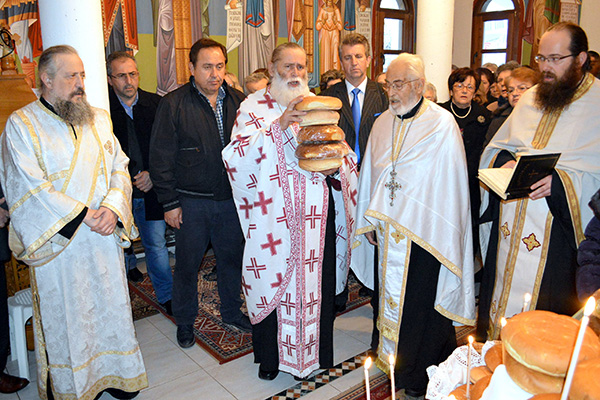 Πιστοί, γυναίκες κυρίως, φέρνουν τσαμπιά από σταφύλι, που συνηθίζουν να διατηρούν κρεμασμένα στα υπόγεια κελάρια οινοποίησης, (το έχουν σε καλό να αντέξουν τα σταφύλια ως τη 1η Φεβρουαρίου) και τα κρεμούν μπρος στην εικόνα του Αγίου και έξω από την εκκλησία. Μετά τον αγιασμό, θα πάρει ο καθένας μερικές ρώγες και θα τις κρατήσει σαν φυλαχτό για όλη τη χρονιά.
