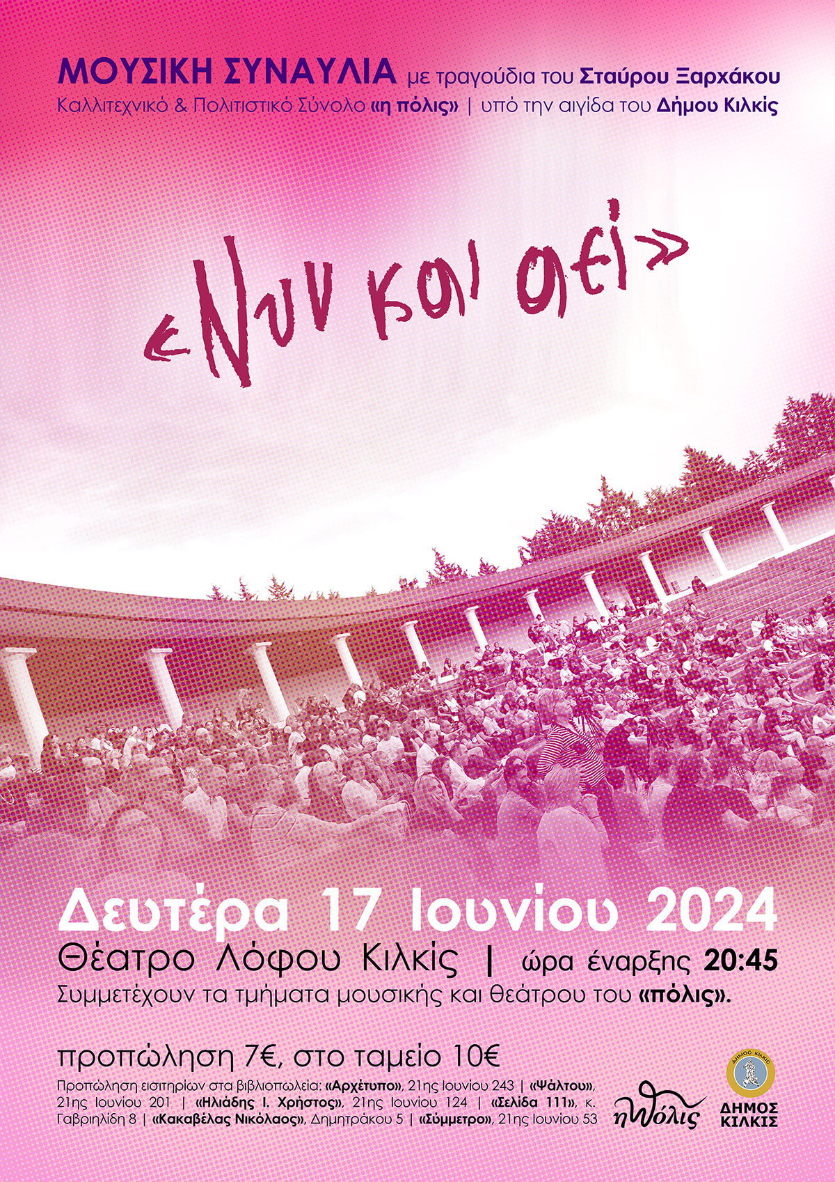 Θα συμμετάσχουν τα τμήματα μουσικής και θεάτρου του «πόλις» και θα παρουσιαστούν έργα σημαντικών ποιητών και στιχουργών που μελοποίησε ο Σταύρος Ξαρχάκος.