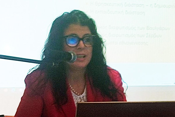 Αναφερόμενη στο πολιτικό πρόγραμμα της εθνικής ολοκλήρωσης που είχε ήδη τραυματιστεί βαριά από τη συνθήκη του Βερολίνου το 1878 με τον ακρωτηριασμό της Μεγάλης Βουλγαρίας, η κυρία Πατρωνίδου υποστήριξε ότι το εθνικιστικό όνειρο εξόδου στο Αιγαίο και κατάληψης της Μακεδονίας, στοίχειωσε για πάντα τους Βουλγάρους και δημιούργησε μεγάλη κρίση στις ελληνοβουλγαρικές σχέσεις, με τη Βουλγαρία εκμεταλλευόμενη την παρουσία ελληνόφωνων, σλαβικών και βουλγαρικών πληθυσμών να επιχειρεί αρχικά ειρηνική διείσδυση μέσω της παιδείας και της Εξαρχίας και στη συνέχεια να σκληραίνει τη στάση της χρησιμοποιώντας απροκάλυπτη βία σε όσους αντιτάχθηκαν στην απόπειρα του εκβουλγαρισμού. Το Μακεδονικό ζήτημα, σύμφωνα με την ομιλήτρια,κρύβεται πίσω από τον Α’ και Β’ Παγκόσμιο Πόλεμο γι’ αυτό και οι συγκρούσεις είναι έντονες και η αγριότητα του βουλγαρικού στρατού, ιστορικά επιβεβαιωμένη. Ο συνασπισμός Ελλάδας, Βουλγαρίας, Σερβίας στον Α’ Βαλκανικό Πόλεμο με τους παλιούς εχθρούς να γίνονται φίλοι εξυπηρέτησε τα σχέδια του εδαφικού διαμελισμού της καταρρέουσας Οθωμανικής Αυτοκρατορίας, παρόλα αυτά δεν ικανοποίησε τις βουλγαρικές απαιτήσεις για τη Μακεδονία, η δε ήττα το 1913 στον Β’ Βαλκανικό Πόλεμο πέρασε στο συλλογικό ιστορικό υποσυνείδητο των Βουλγάρων ως μια μεγάλη καταστροφή.