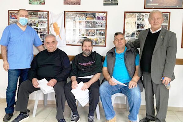 Από αριστερά: ο γιατρός κ. Αθανάσιος Γιακαμόζης, Λάζαρος Παπαδόπουλος, Σίμος Ιωαννίδης, Βαγγέλης Μπουσμπούκης και ο γράφων.