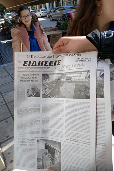 Η ιδέα και προσφορά μας βρήκε ευήκοα ώτα και άμ έπος, αμ έργον οι μικροί συνάδελφοι στρώθηκαν και κατέγραψαν όσα επέλεξαν ως σημαντικά. Και ως Όμιλος Δημοσιογραφίας και Ψηφιακών Μ.Μ.Ε. του 2ου Πειραματικού Γυμνασίου Κιλκίς επιμελήθηκαν το κεντρικό οχτασέλιδο των ΕΙΔΗΣΕΩΝ ως την ΜΑΘΗΤΙΚΗ ΕΦΗΜΕΡΙΔΑ της Νέας Γενιάς.