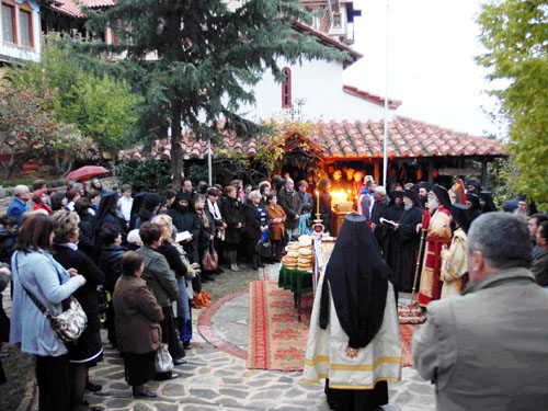 Ανήμερα το πρωί ετελέσθη η ακολουθία του Μεσονυκτικού και του Όρθρου και στη συνέχεια η θεία Λειτουργία. Κατά τον Πανηγυρικό της ημέρας ο άγιος Καθηγούμενος τόνισε μεταξύ άλλων τα εξής: