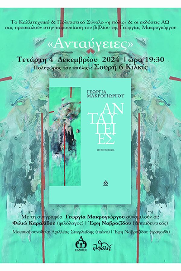 Παρουσίαση του νέου βιβλίου της Γεωργίας Μακρογιώργου «Ανταύγειες» στον πολυχώρο του Καλλιτεχνικού και Πολιτιστικού Συνόλου «η πόλις»