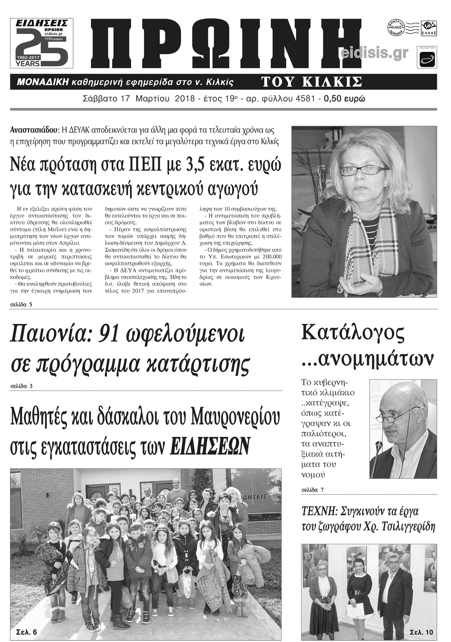 Πέντε χρόνια πριν. Διαβάστε τι έγραφε η καθημερινή εφημερίδα ΠΡΩΙΝΗ του Κιλκίς (17-3-2018)