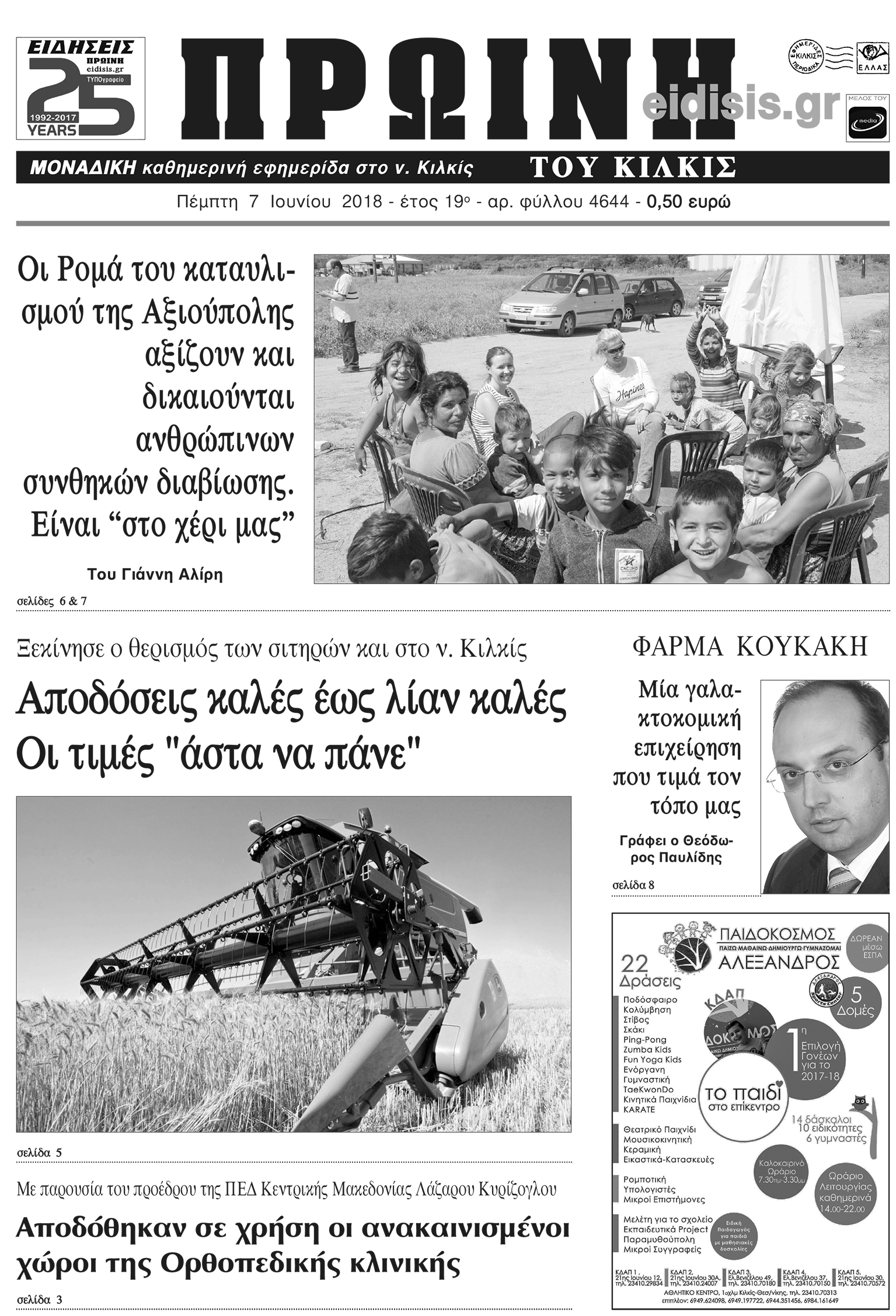 Πέντε χρόνια πριν. Διαβάστε τι έγραφε η καθημερινή εφημερίδα ΠΡΩΙΝΗ του Κιλκίς (7-6-2018)