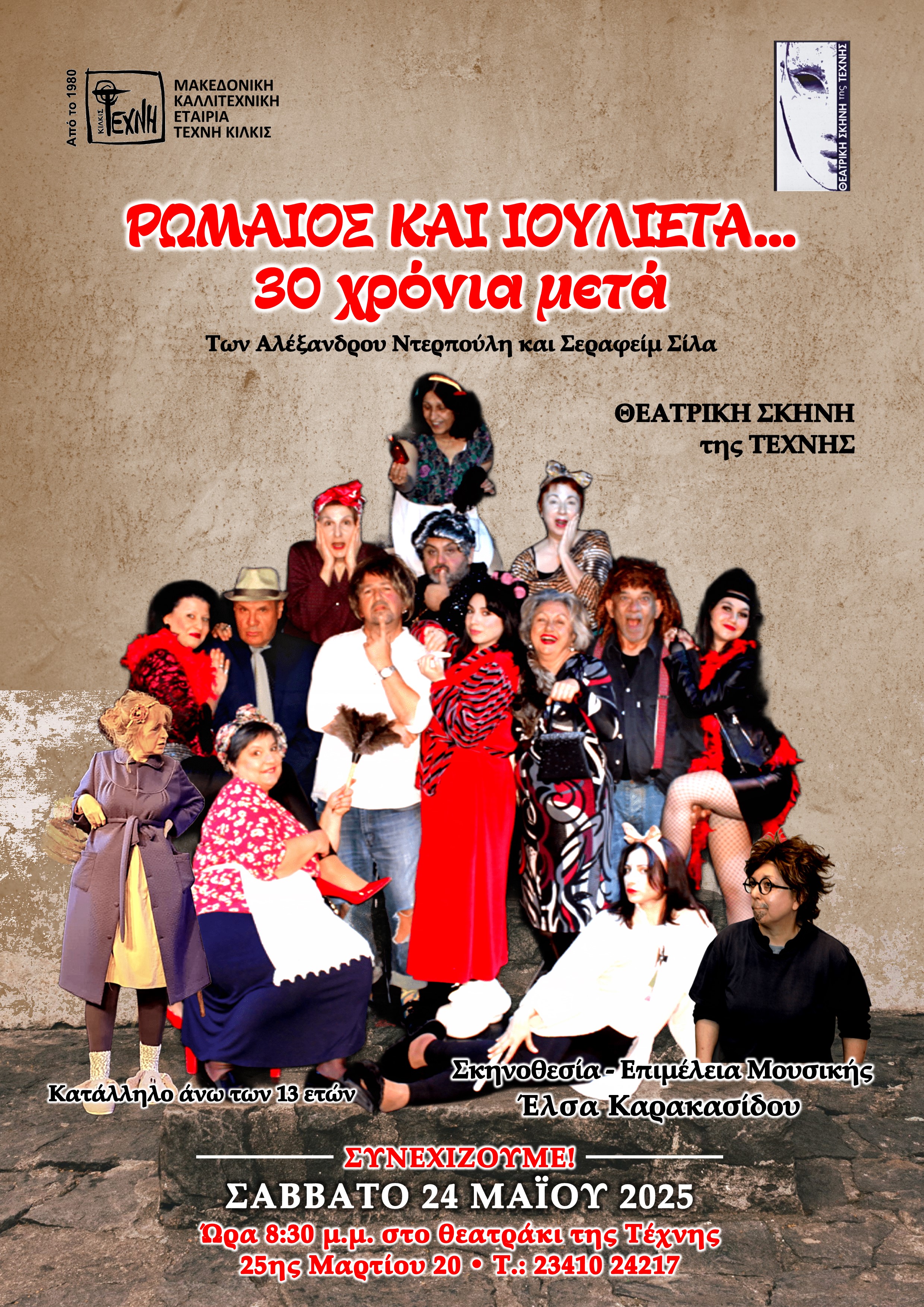Μετά από τέσσερις sold out   παραστάσεις, ο  «Ρωμαίος και Ιουλιέτα-30 χρόνια μετά» της Θεατρικής Σκηνής της Μακεδονικής Καλλιτεχνικής Εταιρίας ΤΕΧΝΗ Κιλκίς  επανέρχεται.