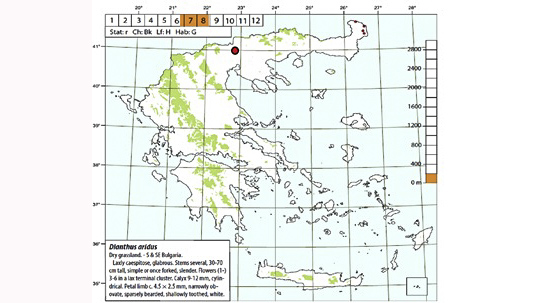 Μέχρι σήμερα η καταγραφές στην Ελλάδα αποτυπώνονται στο χάρτη 1, από την βάση δεδομένων Flora Hellenica database. Με την βοήθεια του καθηγητή Arne Strid που αποτελεί μεγάλο κεφάλαιο της Ελληνικής χλωρίδας, έγινε η νέα καταχώρηση στον χάρτη από την περιοχή των αποξηραμένων λιμνών Αρτσάν- Αματόβου στο Κιλκίς. Θα το συναντήσουμε από τον Αύγουστο και μέχρι τον Οκτώβριο σε φωτεινές τοποθεσίες με χαμηλή βλάστηση καθώς και στα περιθώρια αγροτικών δρόμων στις περιοχές από το Παλιό Γυναικόκαστρο και μέχρι το Νέο Αγιονέρι και από το Μαυρονέρι μέχρι τον Άσπρο.