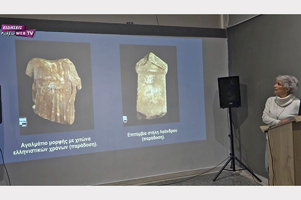 Πολύ σύντομα θα δείτε ευρήματα της ανασκαφικής περιόδου 2021. Είναι ενδιαφέρουσα η διαχρονία των ευρημάτων. Η πόλη σίγουρα υπάρχει από τον τέταρτο αιώνα προ Χριστού, εκπροσωπούνται οι ελληνιστικοί χρόνοι με αγαλμάτια, επιτύμβιες στήλες, μελαμβαφής κάνθαρος, μελαμβαφής λύχνος, πώματα ερυθρόμορφων λεκανιδίων από αττικά εργαστήρια, κι ένα εξαιρετικό κομμάτι ρωμαϊκής σαρκοφάγου με παράσταση Διοσκούρων κ.α.