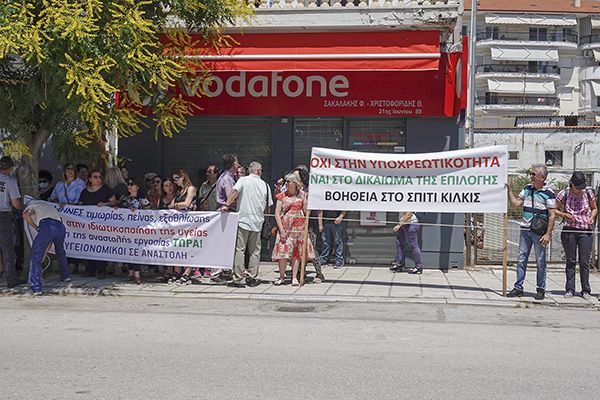 Με δυο πανό διαμαρτυρίας εμφανίστηκαν στο χώρο της παρέλασης, την Τρίτη 21 Ιουνίου, υγειονομικοί και εργαζόμενοι στο «Βοήθεια στο Σπίτι» που βρίσκονται σε αναστολή εργασίας λόγω του μη εμβολιασμού τους.