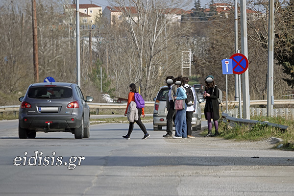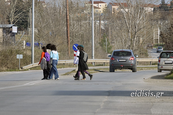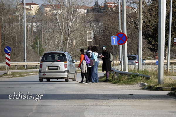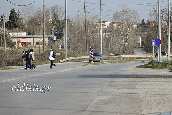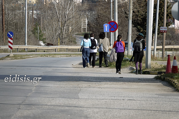 (Οι φωτογραφίες είναι από το Μάρτιο του 2023, με τις φοιτήτριες να προσπαθούν να διασχίσουν τον κόμβο στην είσοδο του Κιλκίς, στην περιοχή του στρατοπέδου Καμπάνη. Από εκεί μέχρι τις εγκαταστάσεις του Πανεπιστημίου δεν υπάρχει πεζοδρόμιο ούτε φωτισμός!)