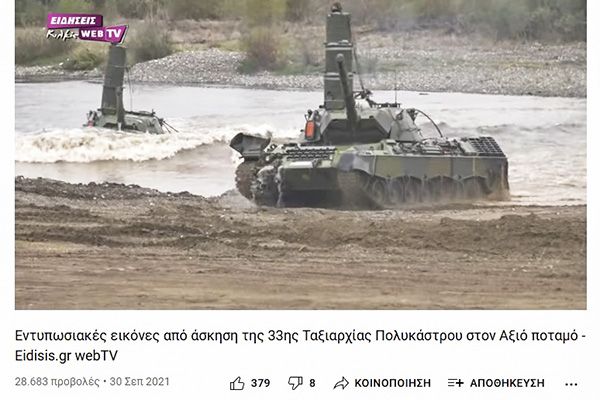 Ήταν εντυπωσιακές οι εικόνες των αρμάτων μάχης μέσα στον Αξιό ποταμό και του στρατιωτικού σκύλου που -σύμφωνα με το σενάριο της άσκησης- ακινητοποίησε τον «εχθρό», εντυπωσιακή και η απήχησή τους πανελλαδικά.
