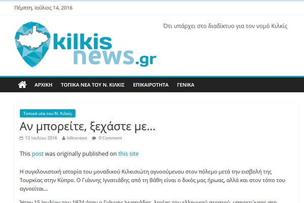 Κάποια άλλα το μόνο που κάνουν ως «ειδησεογραφικά site» είναι να κλέβουν από δεξιά και αριστερά ό,τι με κόπο γράφουν επαγγελματίες δημοσιογράφοι, χωρίς καν να καταγράφουν την πηγή τους. Το τελευταίο που έπεσε στην αντίληψή μας και αντιγράφει ασύστολα τα κείμενα της ηλεκτρονικής μας εφημερίδας είναι το Kilkisnews.gr!