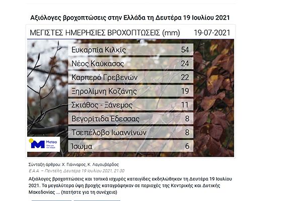 Μάλιστα, το ύψος βροχής της Ευκαρπίας ήταν υπερδιπλάσιο από τη δεύτερη καταγραφή, στο Νέο Καύκασο και την τρίτη στο Καρπερό Γρεβενών!