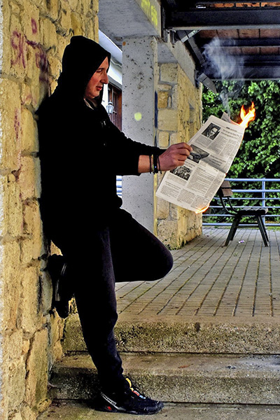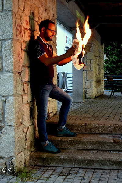 "Φωτιά και τσεκούρι" ήταν το project των μελών της Φωτογραφικής Ομάδας Κιλκίς. Πειραματίζονταν για τη φωτογράφιση με πλάνα φωτιάς τα μέλη της Φωτογραφικής και είπαν να κάψουν τις… ΕΙΔΗΣΕΙΣ, κάπου στο Πάρκο – Κήπος του Κιλκίς.