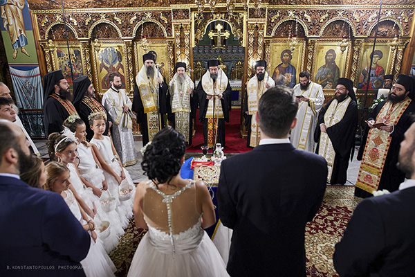 Ούτε ένας, ούτε δυο, αλλά πέντε μητροπολίτες ευλόγησαν το γάμο του Χρήστου και της Θεανώς.