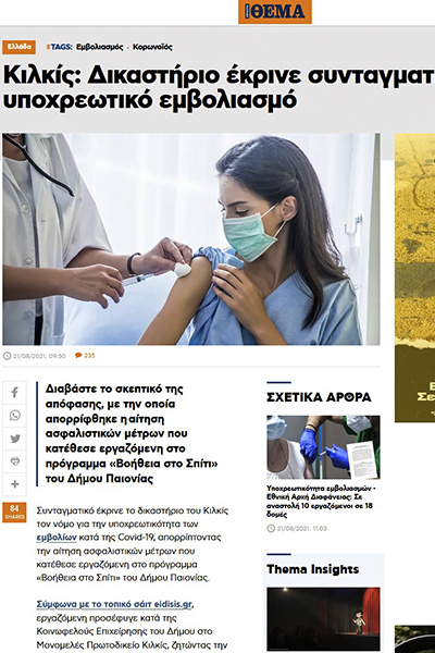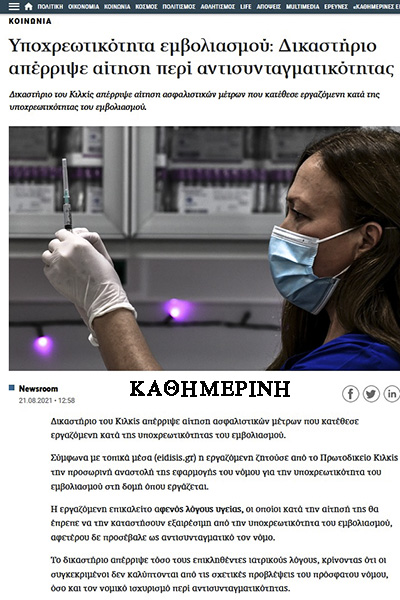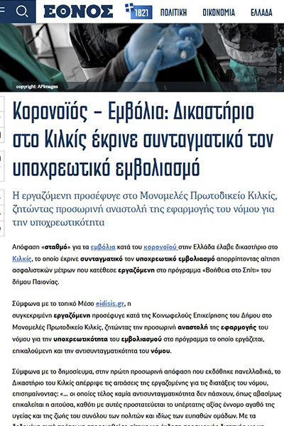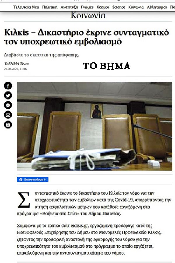 Το αποκλειστικό θέμα που βγάλαμε σήμερα το πρωί, για την απόφαση του Πρωτοδικείου Κιλκίς περί συνταγματικότητας του νόμου για την υποχρεωτικότητα των εμβολίων, έγινε θέμα στις… Ειδήσεις!