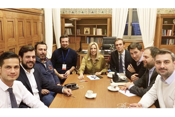 «Ο... βενιαμίν Στέφανος Παραστατίδης είχε την ιδέα μετά τη σύσκεψή μας στη Βουλή. Παύλος Χρηστίδης, Δημήτρης Μάντζος, Σπύρος Καρανικόλας, Παναγιώτης Βλάχος και Χρήστος Ασπιώτης ποζάρουν και μόνος συνεχίζει τη σύσκεψη ο Δημήτρης Οικονόμου, αγορεύοντας». Κατέληξε, δε, σημειώνοντας ότι «από τα ωραία της πολιτικής, είναι οι παρέες που σμιλεύονται»...