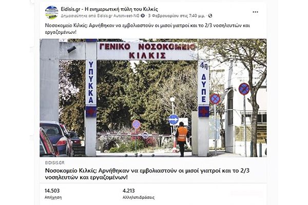 Η ανάρτησή του και στο facebook της ιστοσελίδας μας έφθασε την απήχηση στις 14.500 με 73 σχόλια, άλλα επαινετικά και άλλα όχι για τη στάση γιατρών και νοσηλευτών απέναντι στον εμβολιασμό.