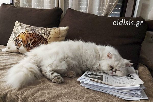Ο αγαπημένος του γάτος έγειρε πάνω στις εφημερίδες και κοιμήθηκε του καλού καιρού! Πως να το χωνέψει ο Παναγιώτης. Μας έστειλε την φωτογραφία και μας είπε τον καημό του: «Εγώ να του έχω βάλει ανατομικά στρώματα και μαξιλάρια για να αναπαύεται κι αυτός να βολεύεται καλύτερα με τις εφημερίδες σας;», μας είπε με παράπονο!