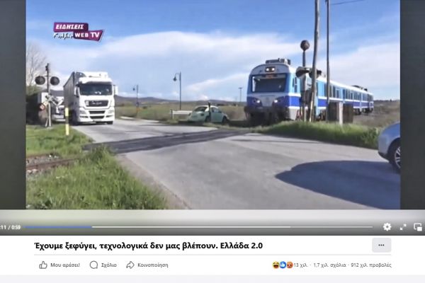 Το βιντεάκι αυτό ξεπέρασε τις 900.000 προβολές, 13.000 «μου αρέσει» και 1.700 σχόλια. Είπαμε, δεν υπάρχει πιο ασφαλής διάβαση από αυτήν της Δοϊράνης. Το τρένο σταματά, κατεβαίνει υπάλληλός του και σταματά τα αυτοκίνητα για να περάσει το τρένο τη διάβαση και μετά ανεβαίνει και πάλι στο τρένο για να συνεχίσει το ταξίδι του. Με τις μπάρες και τους φωτεινούς σηματοδότες μπορεί να συμβεί το λάθος και το κακό, με το να σταματά το τρένο για να ελεγχθεί η διάβαση το λάθος δεν θα έρθει ποτέ. Μπορεί να καθυστερεί λίγο το τρένο, να θυμίζει και προπολεμικές συνθήκες, αλλά από ασφάλεια σχίζουμε.