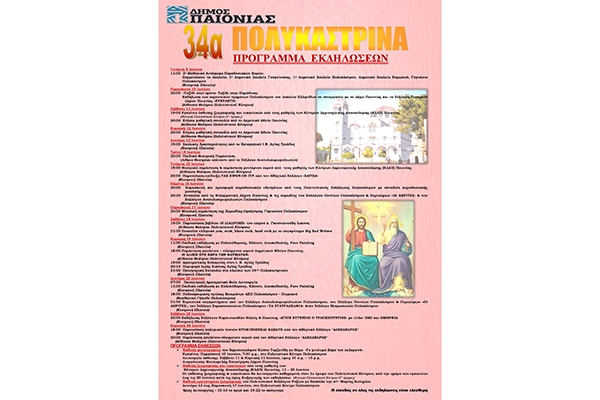 21:00 Πανηγυρική Συναυλία στα πλαίσια των 34ων Πολικαστρινών (Κεντρική Πλατεία)