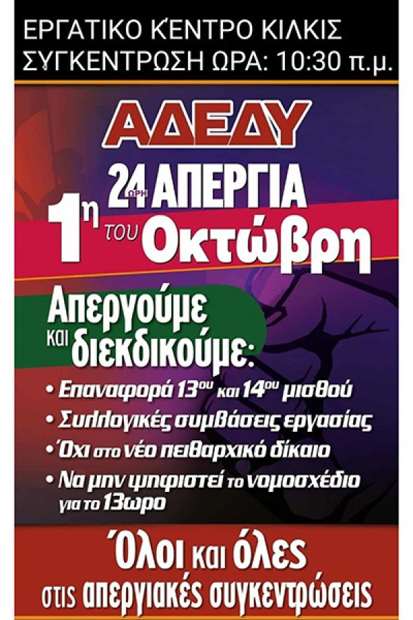 Την 1η του Οκτώβρη απεργούμε και διεκδικούμε: