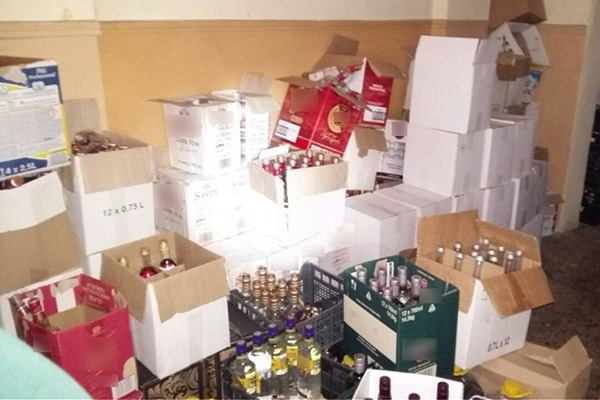 Με μια αιφνιδιαστική εισβολή στην αποθήκη που χρησιμοποιούσαν οι δράστες, βρέθηκαν περισσότερες από 1.100 φιάλες διαφόρων οινοπνευματωδών ποτών, περισσότερες από 2.100 κενές φιάλες, 590 λίτρα αλκοολούχο υγρό και 50 λίτρα οινόπνευμα, ενώ κατασχέθηκαν χρωστικές ουσίες, σύριγγες, οροί, χωνιά, καπάκια φιαλών, δοχεία με νερό και αλκοολόμετρο που χρησιμοποιούνταν στη νόθευση των ποτών. Ακόμη, στο σπίτι του 48χρονου βρέθηκαν 18 ξαναγεμισμένες φιάλες με αλκοολούχα ποτά.