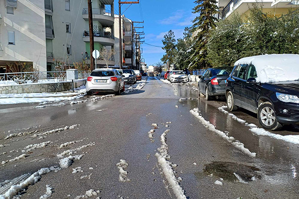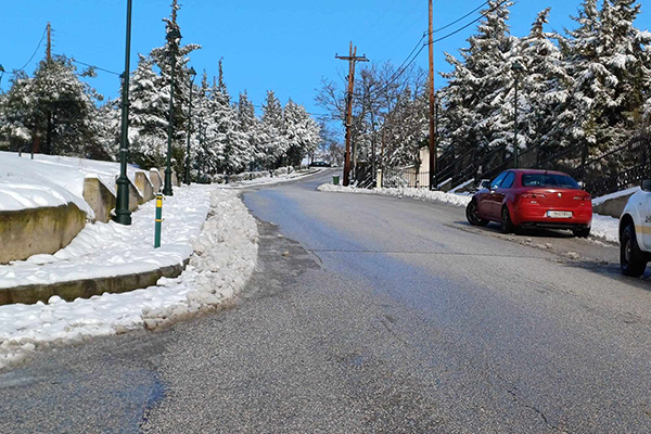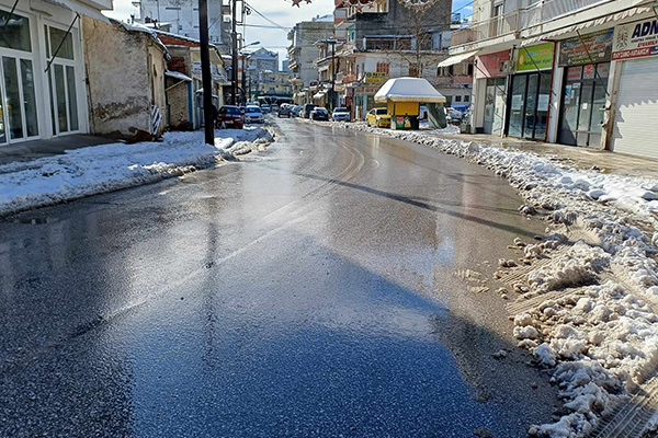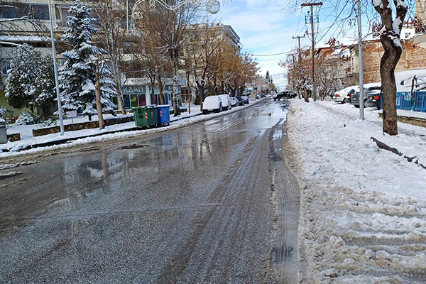 Το προσωπικό του Δήμου παραμένει σε εγρήγορση με τα μηχανήματα να ρίχνουν από το πρωί σήμερα αλάτι στους δρόμους που παρουσιάζουν κλίση ώστε να αποτρέψουν την εκδήλωση φαινομένων παγετού.