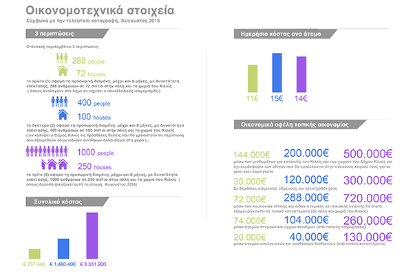 Στη μελέτη προβλέπονται ακόμη (για κάθε περίπτωση σεναρίου ξεχωριστά): οι θέσεις εργασίας που θα δημιουργηθούν, το κόστος υλοποίησης, το ημερήσιο κόστος ανά άτομο, κατηγοριοποιημένα ανταποδοτικά οφέλη για την τοπική κοινωνία του Κιλκίς.