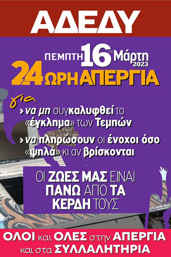 ΟΛΕΣ και ΟΛΟΙ στην ΑΠΕΡΓΙΑ την Πέμπτη 16 Μαρτίου
