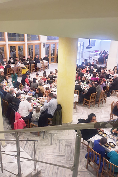 Από αυτές τις ενορίες εφέτος ―σύμφωνα με μια πάγια οργανωμένη παράδοση― γονείς και παιδιά και οι κατασκηνωτικοί συνεργάτες συγκεντρώθηκαν πάλι στην ευρύχωρη και εξαιρετικά φιλόξενη αίθουσα της Ενορίας Παναγίας “Άξιόν Εστιν” Αξιουπόλεως, το μεσημέρι της δεύτερης μέρας των Χριστουγένων. Τα μεν παιδιά για μια συλλογική ανανέωση των ευχάριστων και δημιουργικών Κατασκηνωτικών εμπειριών. Οι δε μεγαλύτεροι με όσα παιδιά τους δεν συμμετείχαν στις κατασκηνώσεις, για μια μεταλειτουργική βίωση των Χριστουγέννων.