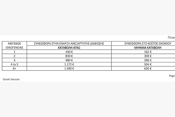 Και για οικογένεια με εφτά ή και παραπάνω άτομα 550 ευρώ συνολικά
