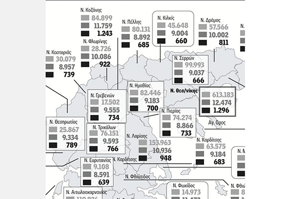 Στο ν. Κιλκίς λοιπόν υπέβαλαν φορολογική δήλωση 45.648 φυσικά και νομικά πρόσωπα με μέσο δηλωθέν εισόδημα 9.004 ευρώ και μέσο φόρο 660 ευρώ.