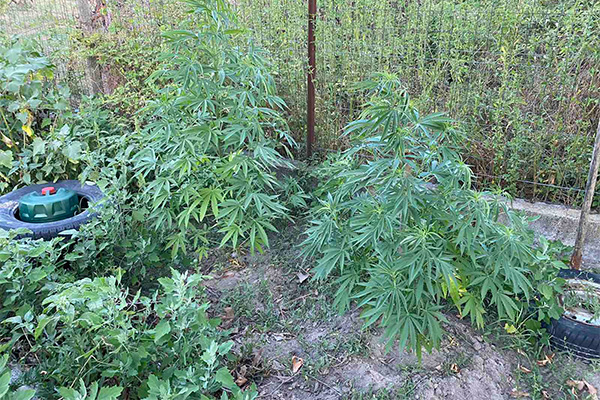 · 8 δενδρύλλια κάνναβης, ύψους έως 150 εκατοστών τα οποία καλλιεργούσε και εκριζώθηκαν,