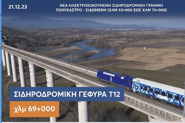Δείτε το video της ΕΡΓΟΣΕ για το δοκιμαστικό δρομολόγιο στη νέα ηλεκτροκινούμενη σιδηροδρομική γραμμή Πολύκαστρο – Ειδομένη, στο τμήμα από το 53ο χλμ έως το 73ο χλμ.