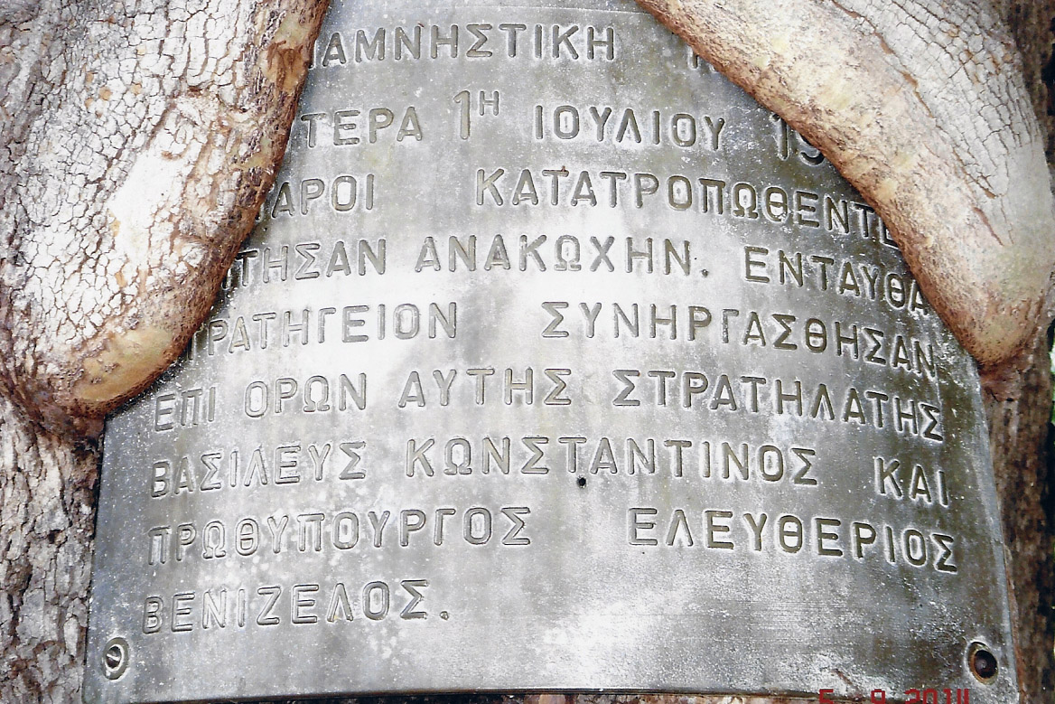 Και όμως απέμειναν ακόμη στο χωριό 2-3 πράγματα που θα μπορούσαν να βελτιώσουν τουλάχιστον την πολιτισμική εικόνα του χωριού.Ενα από αυτά είναι το γέρικο πλατάνι στο χώρο του Σ.Σταθμού όπου ο Ελευθ.Βενιζέλος και ο Βασιληας Κωνσταντίνος,με το επιτελείο τους,μετά την ήττα των βουλγάρων στις 1-7-1913 ,επεξεργάσθηκαν τους όρους της ανακωχής.Τόση όμως υπήρξε η αδιαφορία των τοπικων αρχών ώστε το ιστορικό δένδρο με την φλούδα που ανέπτυξε κοντεύει να καλύψει την επιγραφη με το παραπάνω ιστορικό που είναι γραμμένο σε μεταλλική επιγραφή,που είναι καρφωμένη πάνω στο πλατάνι