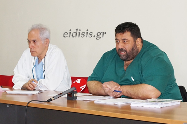 Ανέφερε ότι λείπουν γιατροί σε όλα τα τμήματα αφού εργάζονται 42 όταν οι οργανικές θέσεις είναι 86 και τα τελευταία χρόνια αυξήθηκε η πληρότητα των κλινών, εκτίμησε ως απολύτως υπερεπείγουσα την πρόσληψη 2 παιδιάτρων, ενός αναισθησιολόγου και μαιών γα τα αντίστοιχα τμήματα, και συνολικά επείγει η πρόσληψη, όπως είπε, 21 μόνιμων γιατρών. Χαρακτήρισε εξουθενωμένους και κακοπληρωμένους τους συναδέλφους του και κατέληξε με τη δραματική επωδό: Δεν πάει άλλο, το Νοσοκομείο καταρρέει, κάντε κάτι.