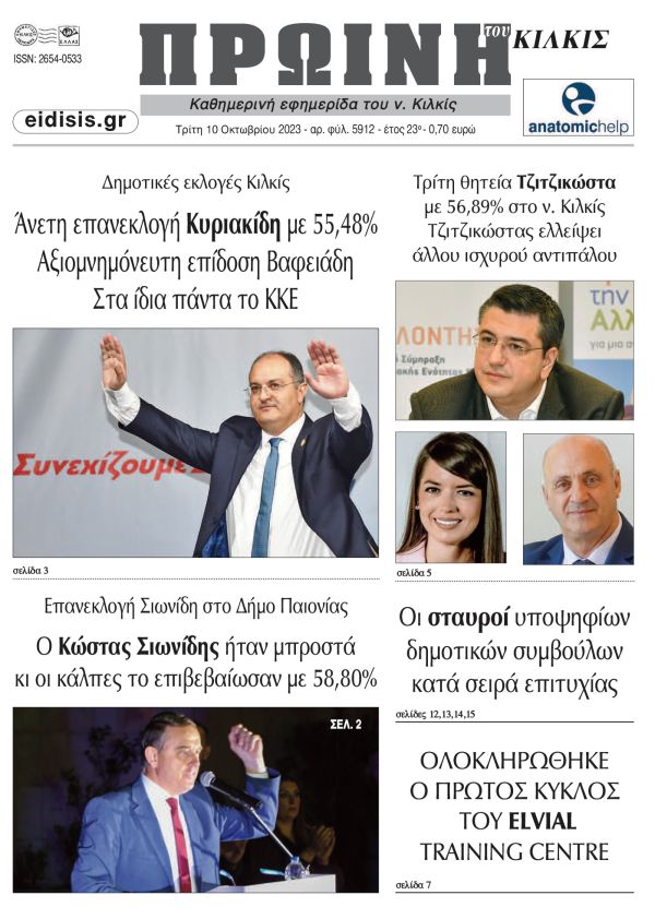 Διαβάστε στο νέο φύλλο της Πρωινής του Κιλκίς, αποτελέσματα, σταυροί υποψηφίων και αναλύση των εκλογών (10-10-2023)