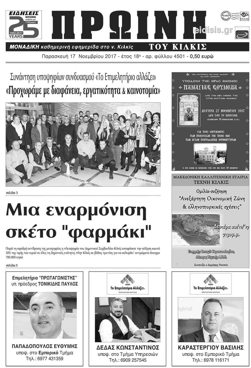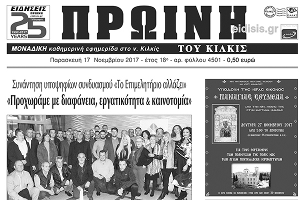 Διαβάστε το πρωτοσέλιδο και το τι γράφει η νέα έκδοση της μοναδικής καθημερινής εφημερίδας του νομού Κιλκίς, «ΠΡΩΙΝΗ του Κιλκίς».