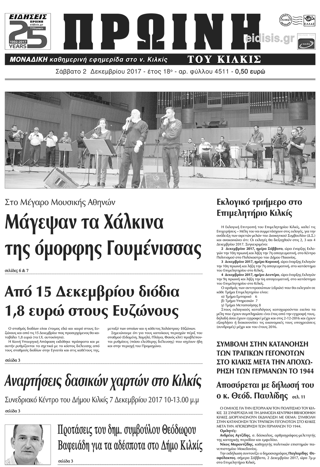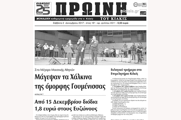 Διαβάστε το νέο πρωτοσέλιδο της Πρωινής του Κιλκίς