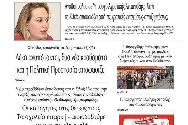 Διαβάστε το νέο πρωτοσέλιδο της Πρωινής του Κιλκίς, μοναδικής καθημερινής εφημερίδας του ν. Κιλκίς (10-9-2020)