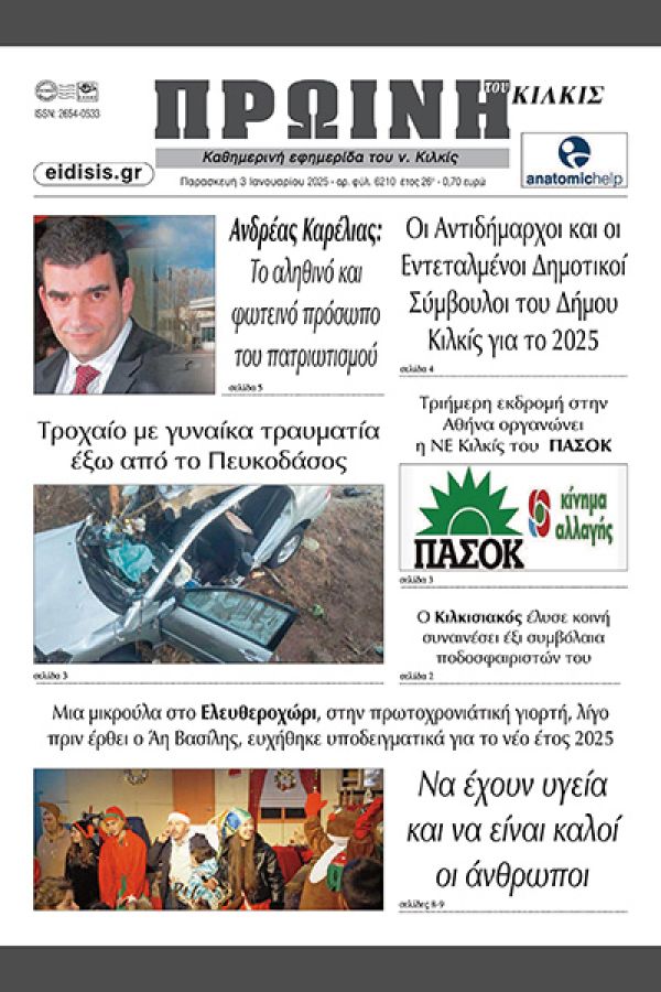 Διαβάστε το νέο πρωτοσέλιδο της Πρωινής του Κιλκίς, μοναδικής καθημερινής εφημερίδας του ν. Κιλκίς (03-01-2025)