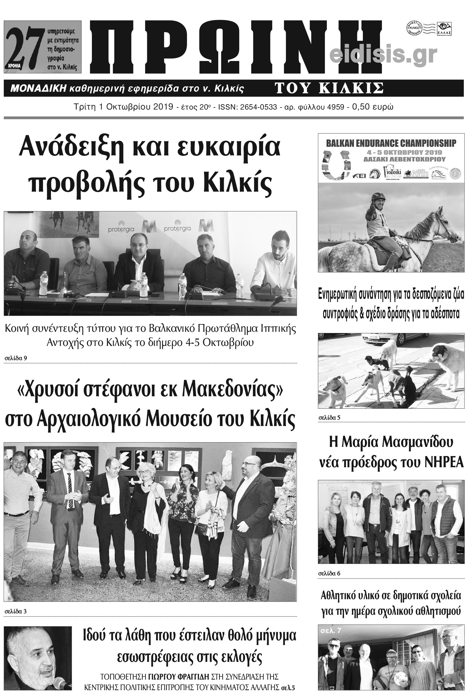 Διαβάστε το νέο πρωτοσέλιδο της Πρωινής του Κιλκίς, μοναδικής καθημερινής εφημερίδας του ν. Κιλκίς (1-10-2019)