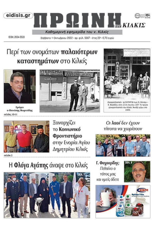 Διαβάστε το νέο πρωτοσέλιδο της Πρωινής του Κιλκίς, μοναδικής καθημερινής εφημερίδας του ν. Κιλκίς (1-10-2022)