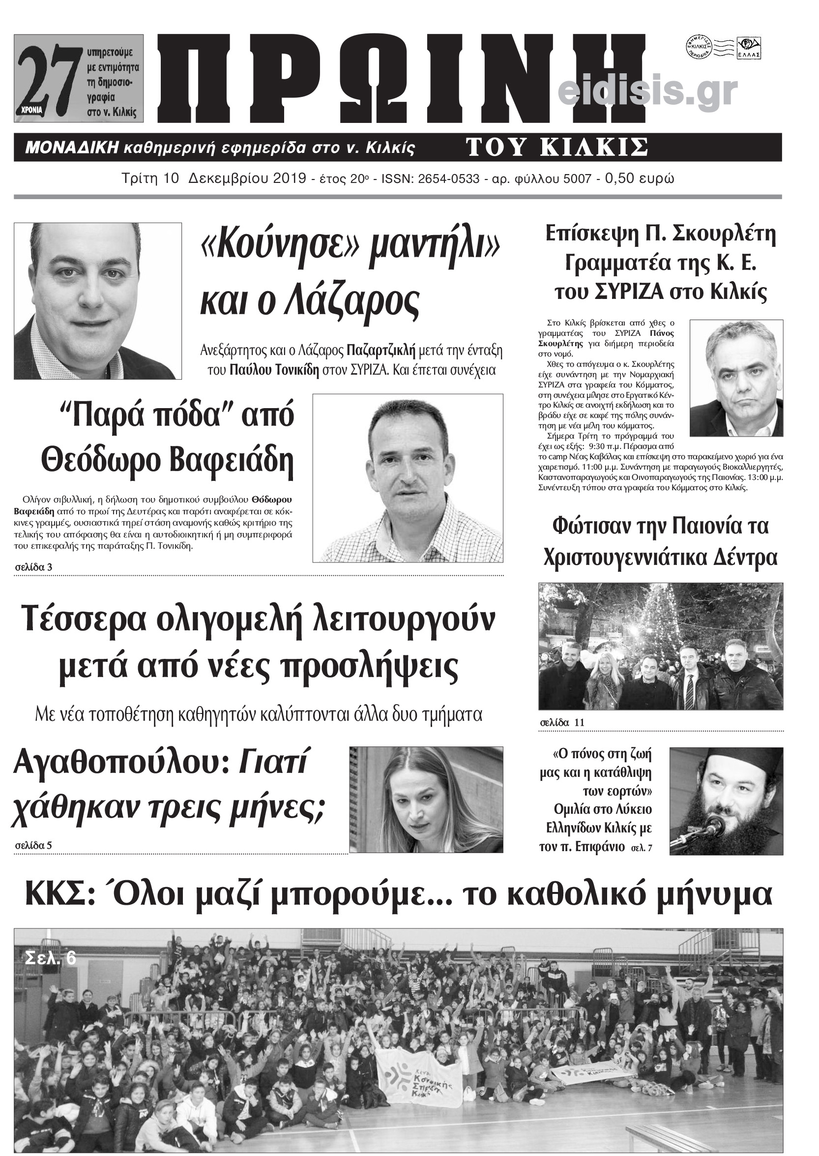 Διαβάστε το νέο πρωτοσέλιδο της Πρωινής του Κιλκίς, μοναδικής καθημερινής εφημερίδας του ν. Κιλκίς (10-12-2019)