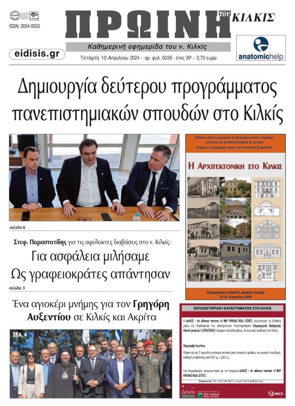 Διαβάστε το νέο πρωτοσέλιδο της Πρωινής του Κιλκίς, μοναδικής καθημερινής εφημερίδας του ν. Κιλκίς (10-4-2024)